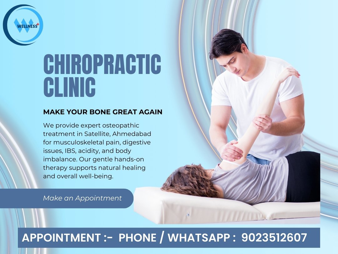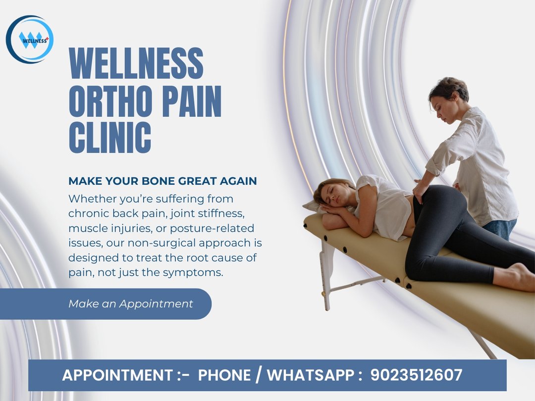 Established in 2021, Wellness Ortho Pain Clinic is a leading chiropractor clinic in Satellite, Ahmedabad, specializing in non-surgical treatment for back pain, neck pain, slip disc, sciatica, knee pain, posture correction and sports injuries. We use advanced American-based flexion distraction machines and modern chiropractic techniques for safe, effective and long-lasting pain relief. Our experienced doctors provide personalized treatment plans including chiropractic care, physiotherapy and osteopathy to improve mobility and quality of life. Located at Titanium City Center Mall, we are trusted by patients across Ahmedabad for reliable spine and pain management treatment. Book your appointment today.